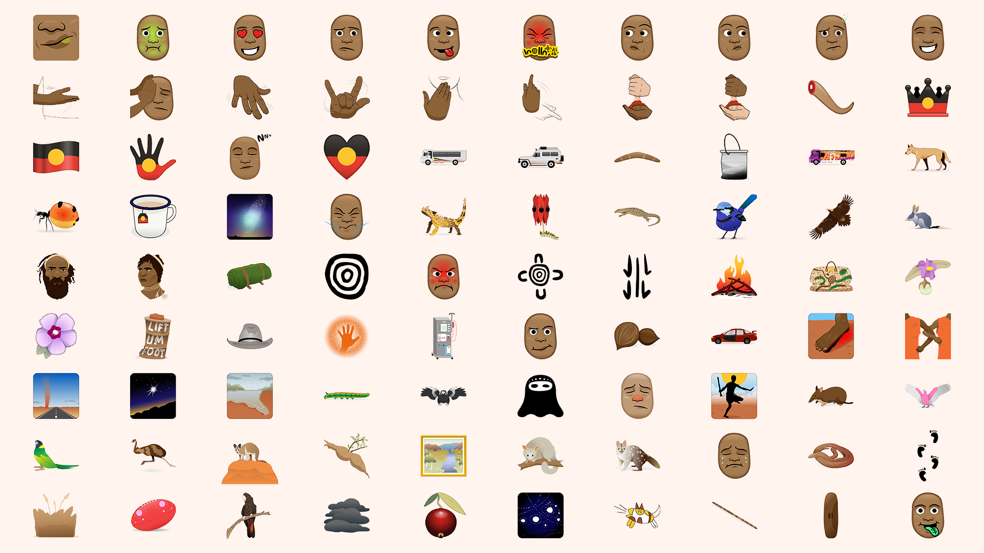 The designs for these emojis were created over the course of 7 weeks at Alice Springs library, with the help of over 1,000 local kids. Ramen was tasked with bringing their designs into a cohesive format for use in a digital space.
