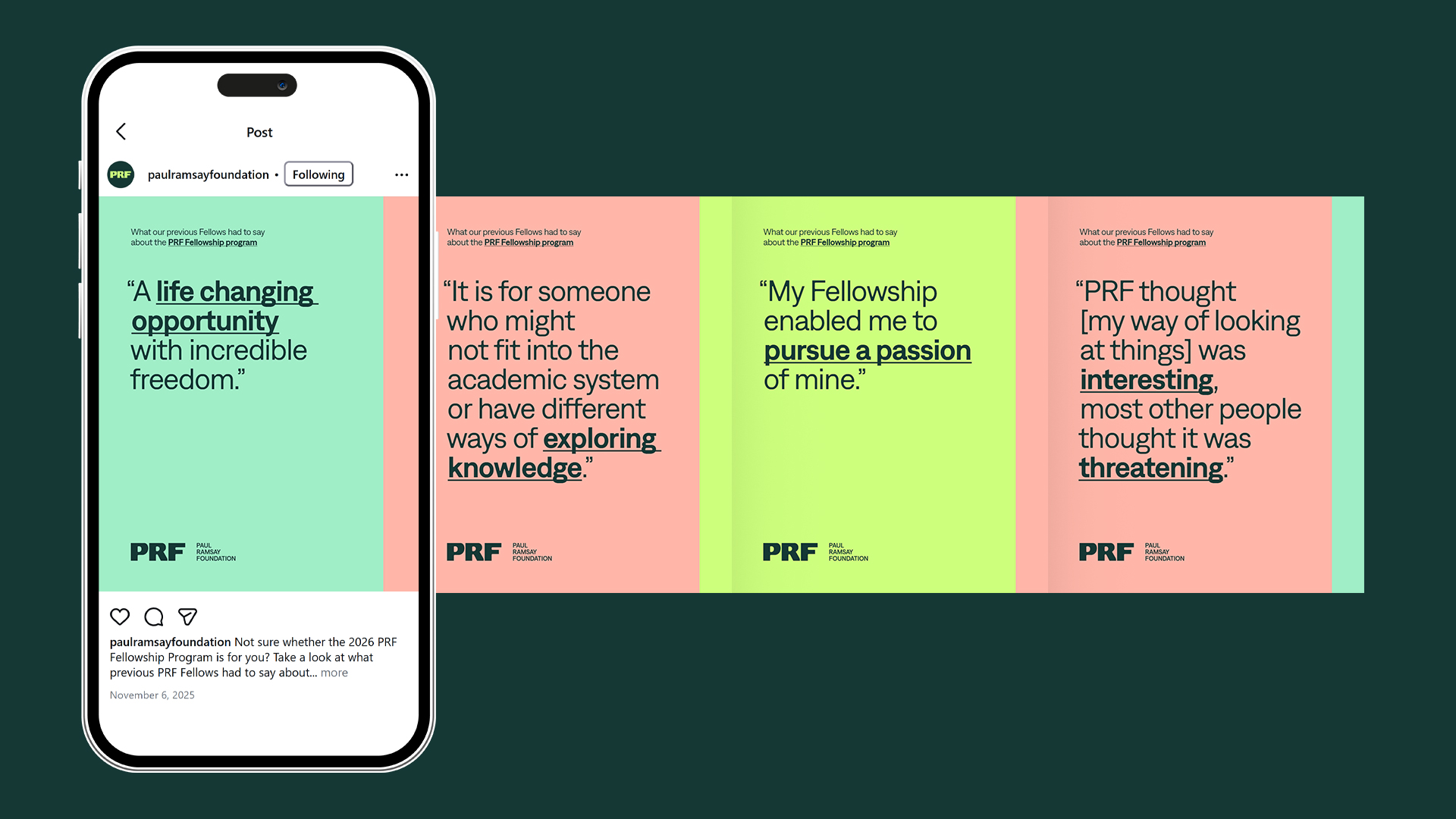 With a recently updated look and feel, we’ve been working with Paul Ramsay Foundation to help roll out their new brand. This includes defining how pieces look and feel on social media, how long-form documents work, and the best way to communicate their vision with the wider world.